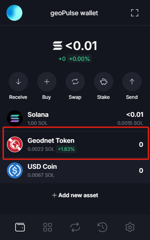 You will see the “Geodnet Token” in the list.