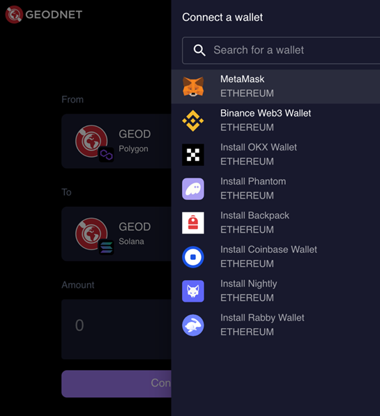 Watch the [YouTube tutorial](https://www.youtube.com/watch?v=PQRmBTIF1vo\&t=6s) or follow the workflow guide below to transfer your GEOD token between Polygon and Solana.&#x20;